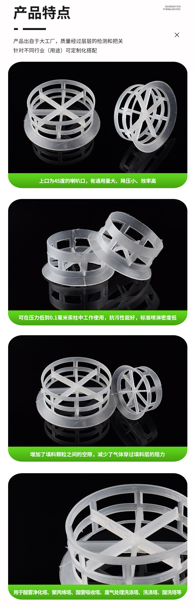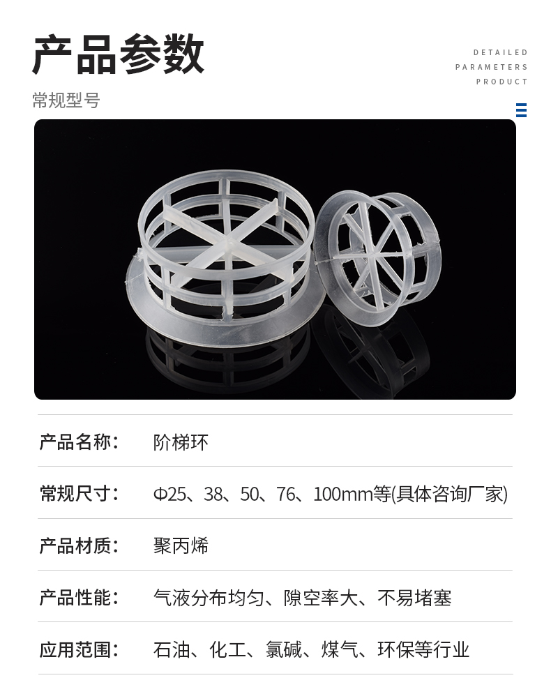 名稱 | 規(guī)格 | 直徑x高度x壁厚 | 比表面積 | 空隙率 | 堆重 | 堆積個(gè)數(shù) | 干填料因子 |